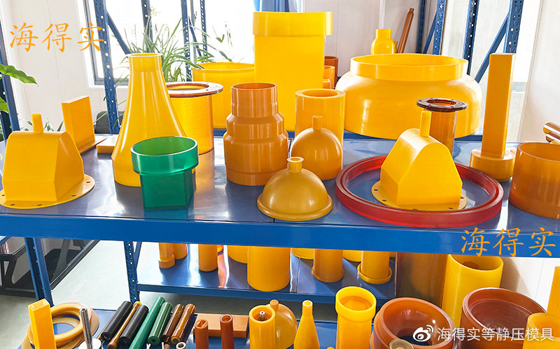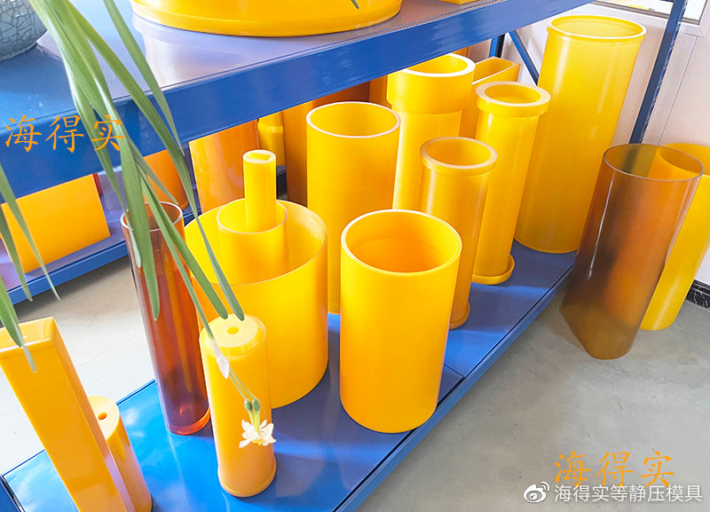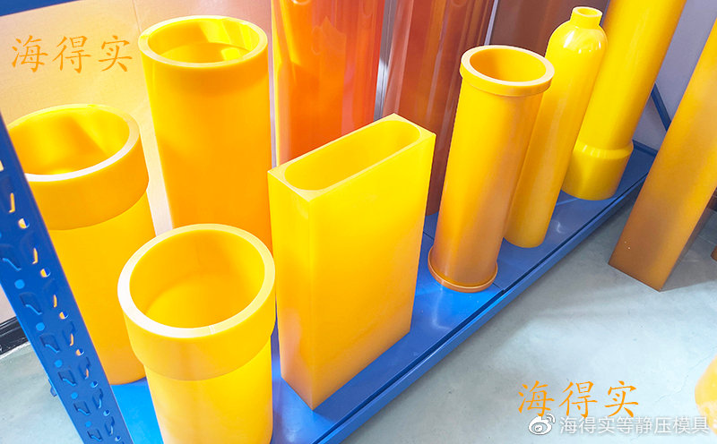 冷等静压成型用的模具,湿法等静压设备,配套弹性体等静压包套胶套皮套工装,在湿袋工艺中,如下图所示,将粉末填充到成型模具中并密封在高压容器外部,然后直接将其浸入压力介质中。然后,在模具的表面上施加等静压以压缩粉末。该方法适用于小批量生产和各种复杂形状或大产品的试生产。有两种类型的结构:左图所示的外部加压类型,用于从外部将压力介质加压到压力容器中。右图所示的活塞直接加压型,它直接对密封在压力容器中的压力介质加压,并安装活塞而不是顶盖。