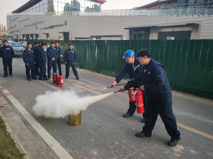 疏散结束后,安全员现场演示灭火器“提、拔、握、压”操作法则及消火栓协同使用流程。参训员工分组进行灭火器实操演练,从判断火情、取器喷射到清理现场,确保人人掌握关键技能。