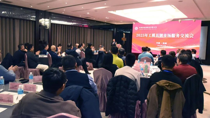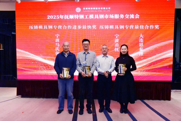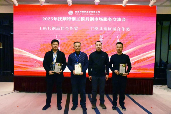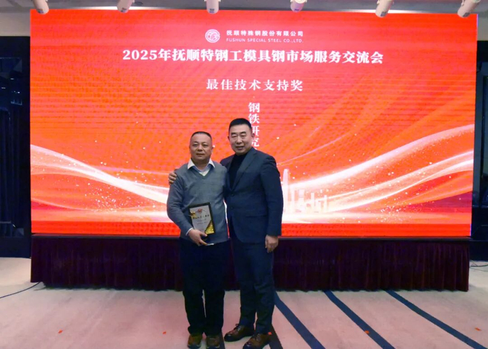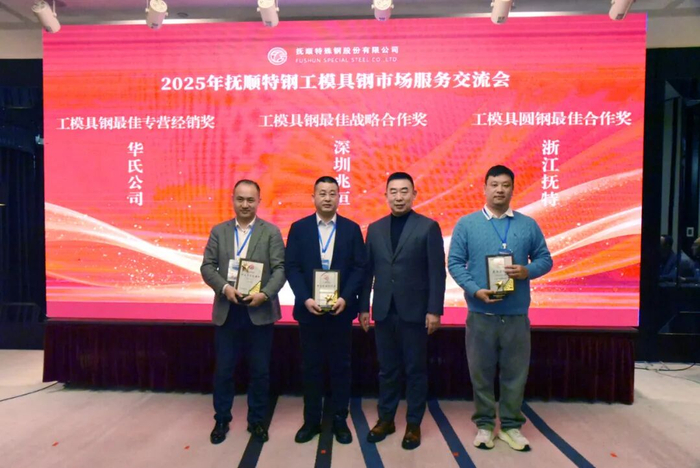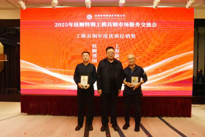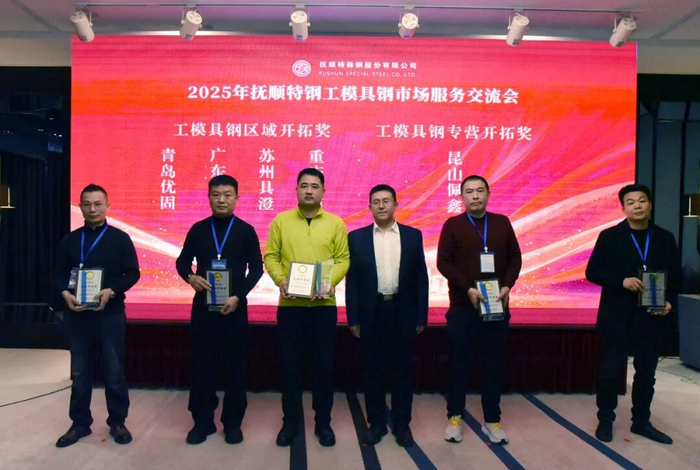 12月9日,2025年抚顺特钢工模具钢市场服务交流会在抚顺友谊宾馆召开。会议旨在总结2025年抚顺特钢工模具钢内贸工作,做好2026年工模具钢国内主要经销商协议协商、提高内贸渠道协调管控效力、推进工模具钢新产品开发与推广等工作。抚顺特钢董事长、总经理孙立国,第一副总经理穆立峰,副总经理崔鸿及生产、技术、销售条线相关人员;钢铁研究总院、东北大学专家学者;深圳兆恒、华氏公司、浙江抚特等18家经销商代表共计80余人参加会议。会议由抚顺特钢销售公司总经理助理郭继春主持。