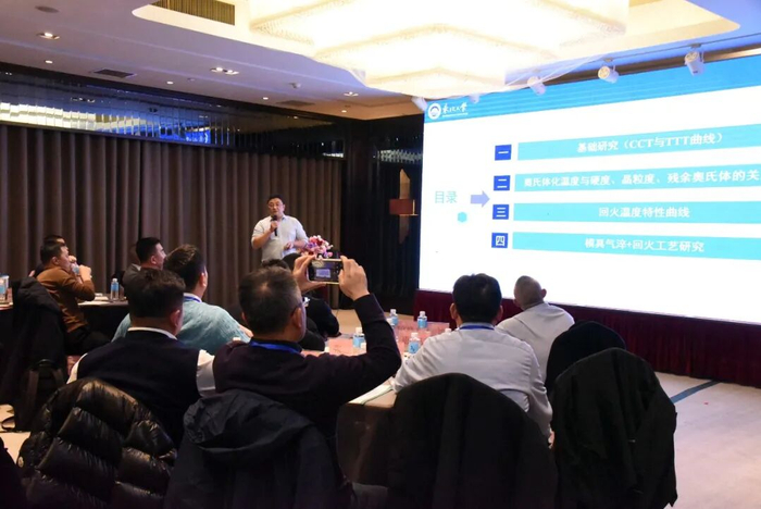 会上,钢铁研究总院工模具钢及轴承钢研究部主任迟宏宵;东北大学材料科学与工程学院教授唐正友;抚顺特钢工模具钢首席专家、技术中心工模具钢室主任刘宝石;宁波马氏体公司董事长于忠江先后就工模具钢工艺进步、技术开发、生产实践、市场开发应用等作了专题报告和案例分享。