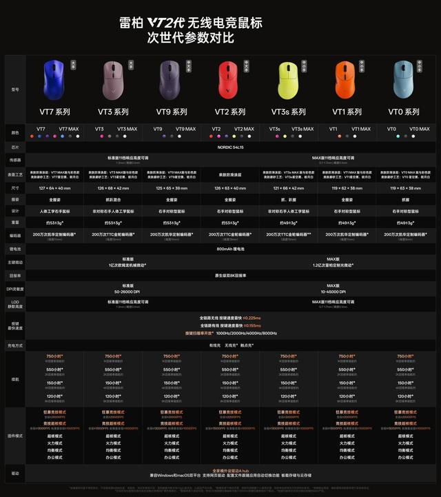 (15款鼠标指VT0、VT1、VT2、VT3、VT3s、VT7、VT9,的标准版和MAX版,以及超轻量级VT0Air MAX)